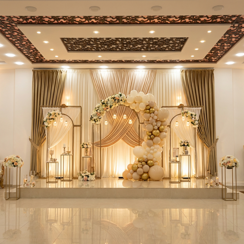 Le Palais des Mariés est une nouvelle salle des fêtes à Chaabat El Leham, conçue pour accueillir vos mariages et événements dans un cadre élégant, moderne et confortable. Spécialisée dans les réceptions de mariage, la salle propose également un espace adapté aux séminaires, conférences et événements privés, avec un accompagnement professionnel pour faire de chaque événement un moment unique.